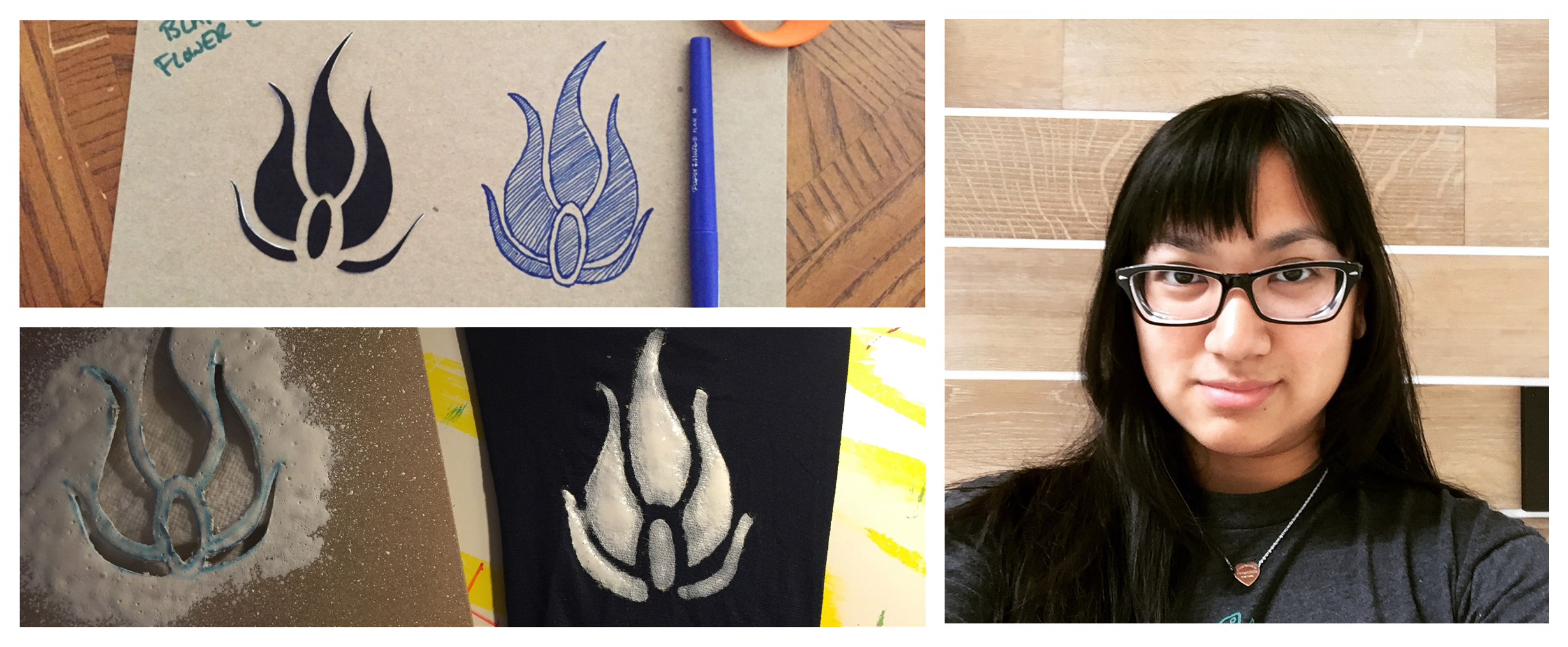 So that meant buying items. I bought pieces of my cosplay from a variety of places, sometimes trying on clothes at the mall and sometimes ordering things online. From there, I started  modifying my purchased items and also started growing out my hair. I added the emblem to the tights by printing off the flower emblem from online, cutting it out, then tracing it onto some scrap cardboard. I then used a box cutter to cut out the stencil. To spray the emblem on, I put more scrap cardboard between the layers of tights so that the paint wouldn’t bleed through to the other side. Then I used Repositionable Tacky Spray on the back of the cardboard stencil and glued it in place to the tights. Lastly, I carefully used white Stencil Spray and sprayed on the pattern. I distracted myself from the boring drying process by going with some friends bouldering (oh god my arms were so sore) and came back to repeat the process for the other leg. Eventually, I got a haircut to trim up any split ends and get Blake’s bangs. I also added a temporary seam to the white top I bought from Banana Republic so that it’d be more of a crop top.