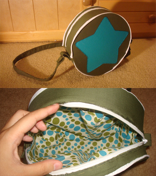 Constructing the backpack was a series of me making it up as I went along. Similar to the vest, I spent some time going over reference images, sketching it out from different angles, and measuring for proportion. The backpack was made using interfacing, gray fabric, black bias tape, a purse magnet, and elastic straps. I had some fun star fabric left over from an old project that I used for the lining and also made a pocket to hold my phone. I actually ended up using that pocket more for my wallet than my phone. (Gotta have the phone at the ready for pictures!) I unfortunately made the lining way smaller than the actual backpack (see below) and due to time constraints couldn’t redo it.