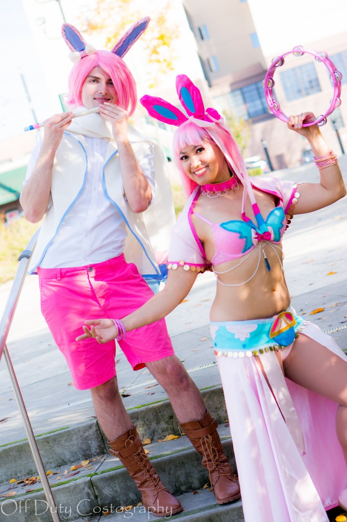I signed up to cosplay Sylveon to join a DnD Eeveelutions group for Kumoricon. All the designs are based on Sunset Dragon’s concept art. We planned to have two of each design (one female version and one male version for a total of 18 people). I’ve always wanted to join a massive cosplay group and Sylveon was the only female one left. After lots of back and forth, I decided to take the plunge and do it. What was stopping me? A fear of showing off my body? Of people judging me the same way I had judged other scantily clad cosplayers? (I unfortunately used to have that jealous mindset of “That bikini isn’t a real cosplay.” I would soon learn just how much work can actually go into these deceptively simple cosplays.) Taking this as an opportunity to really focus on my craft and also fitness, I agreed to be Sylveon.