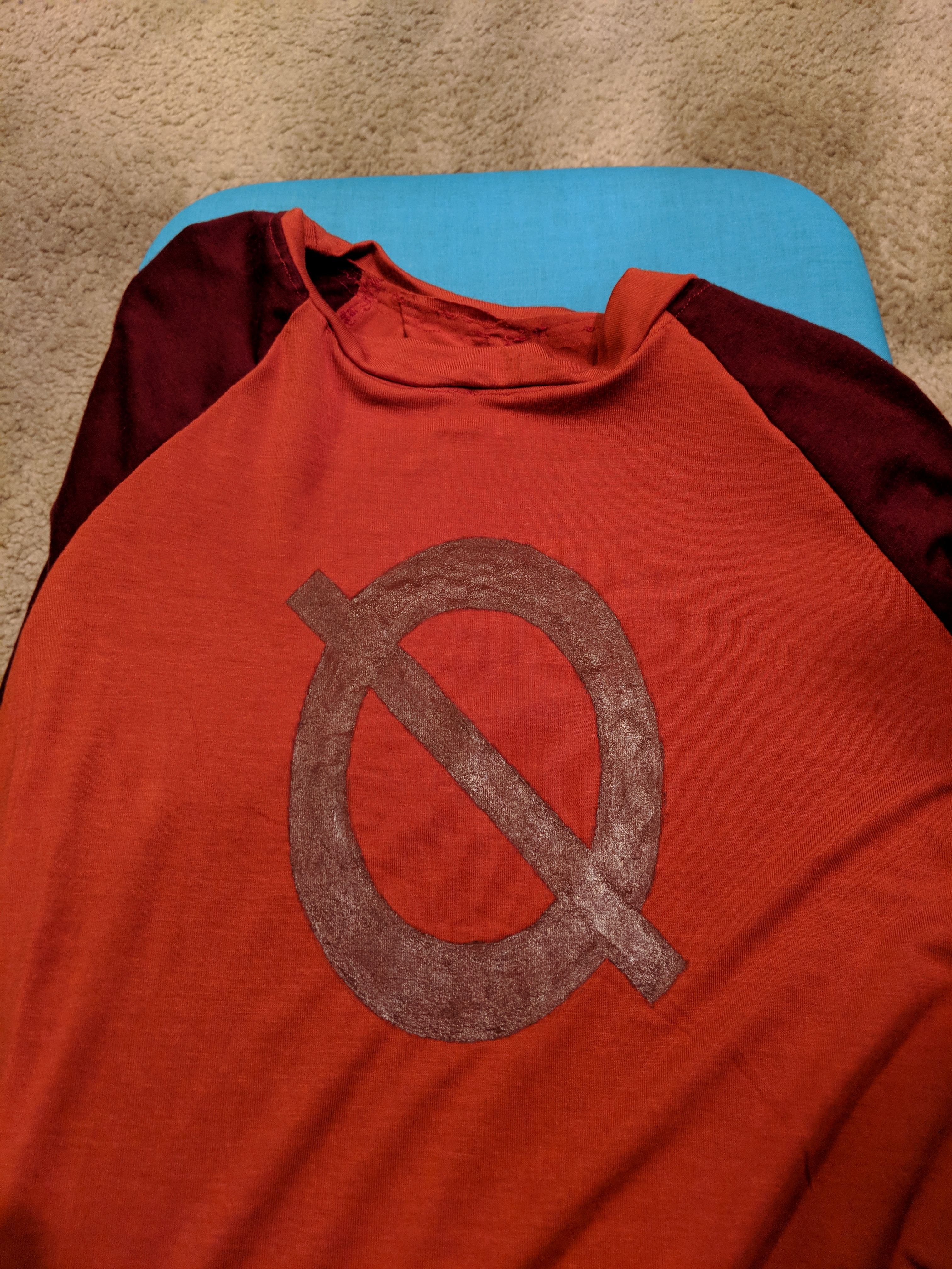 Null symbol traced out, I used fabric paint to fill in the shape. I wasn’t happy with one coat, so I went ahead and did a second coat on to of the first one. Then, I set it using an iron.