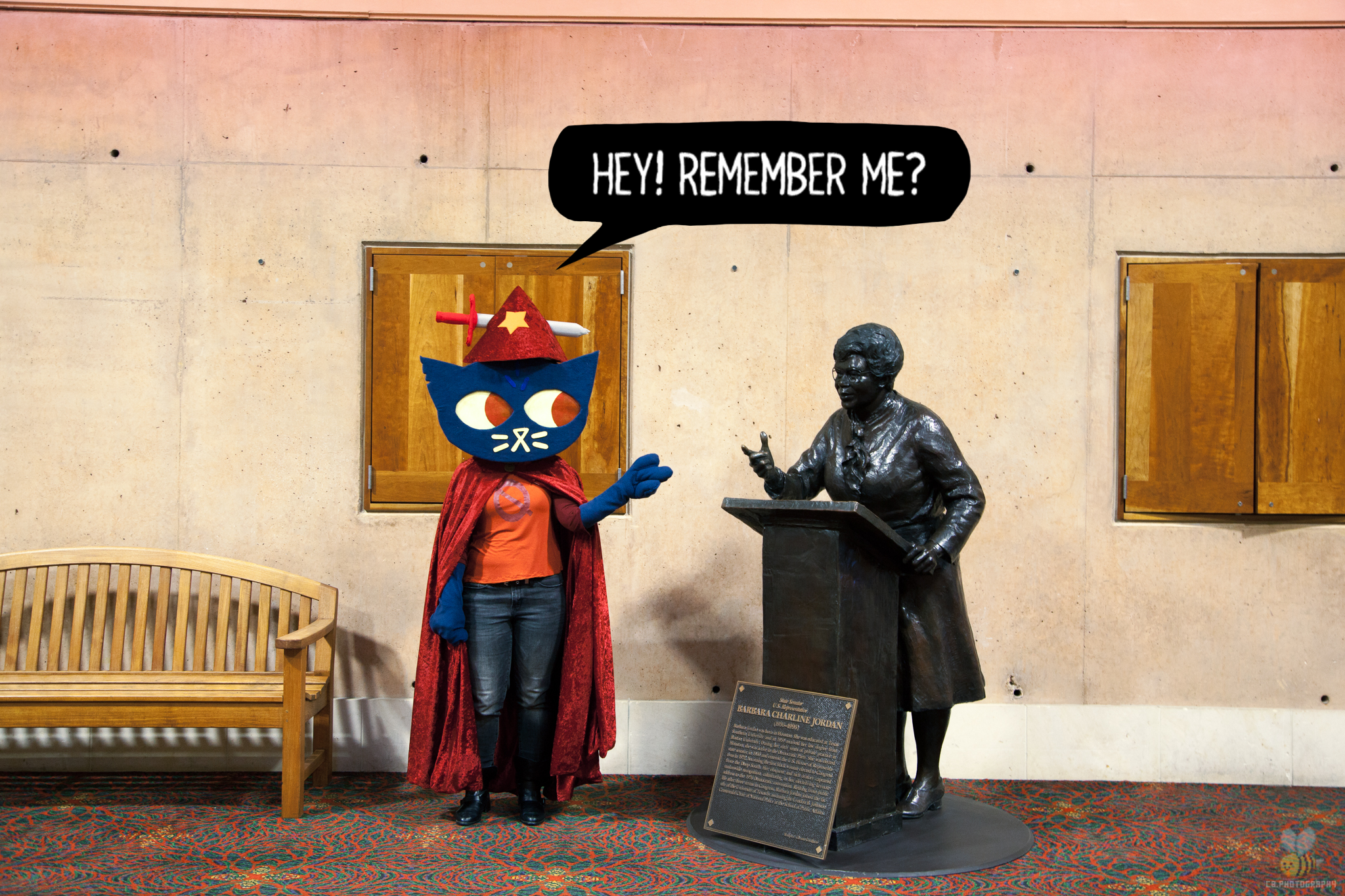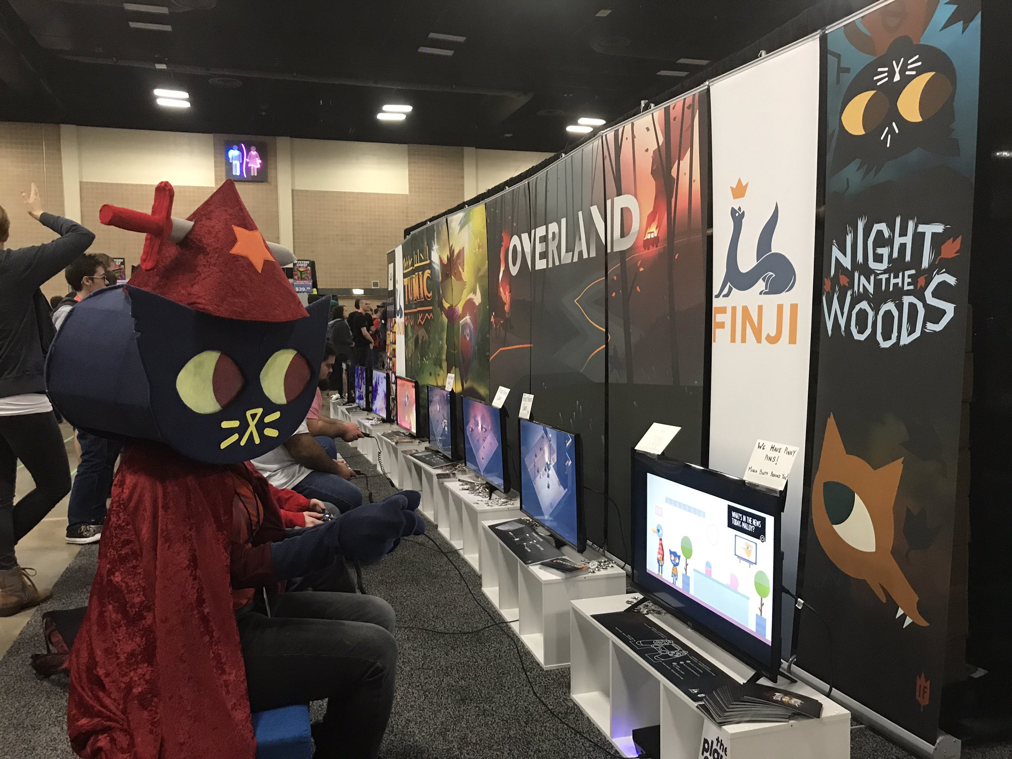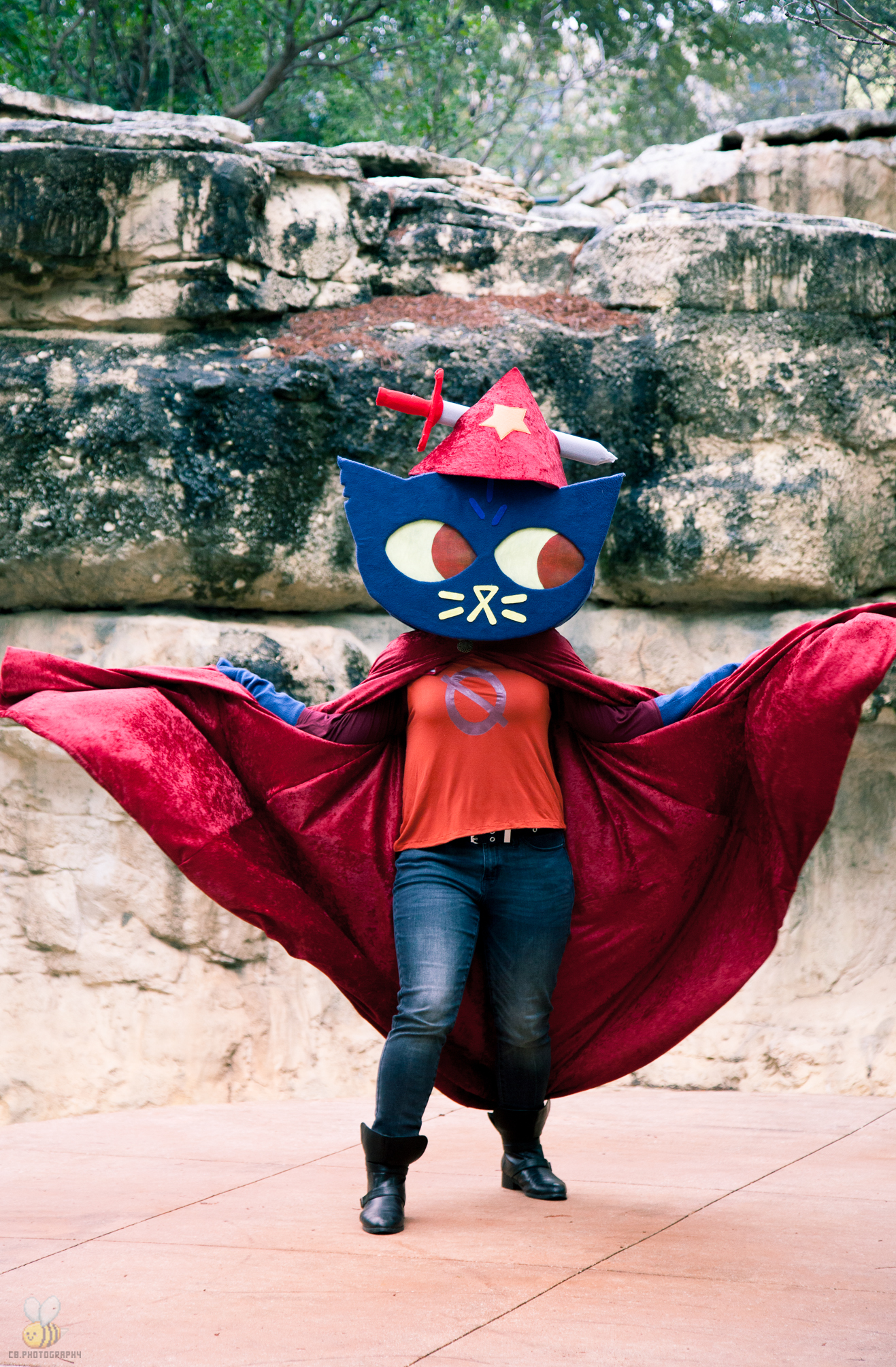 I wore Mae to PAX South and snagged this great photo of me playing Night in the Woods at the Finji booth. Picture taken by FrackAttack! Sound familiar? It should! He’s the guy whose tutorial I used for the head and paws! How cool is that?