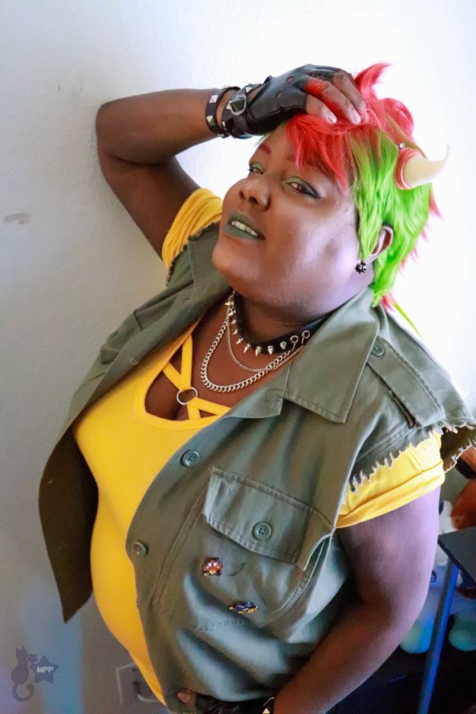 AJ Bug Cosplay AKA @ajbug_cosplay is a 27yo LGBTQIA+, plus-size cosplayer. She has been cosplaying since 2011, going by and promoting the motto “Cosplay is for everyone” all the while. Her first guest appearance was in 2019 at County Pop Con, where she was a judge for the cosplay contest.
