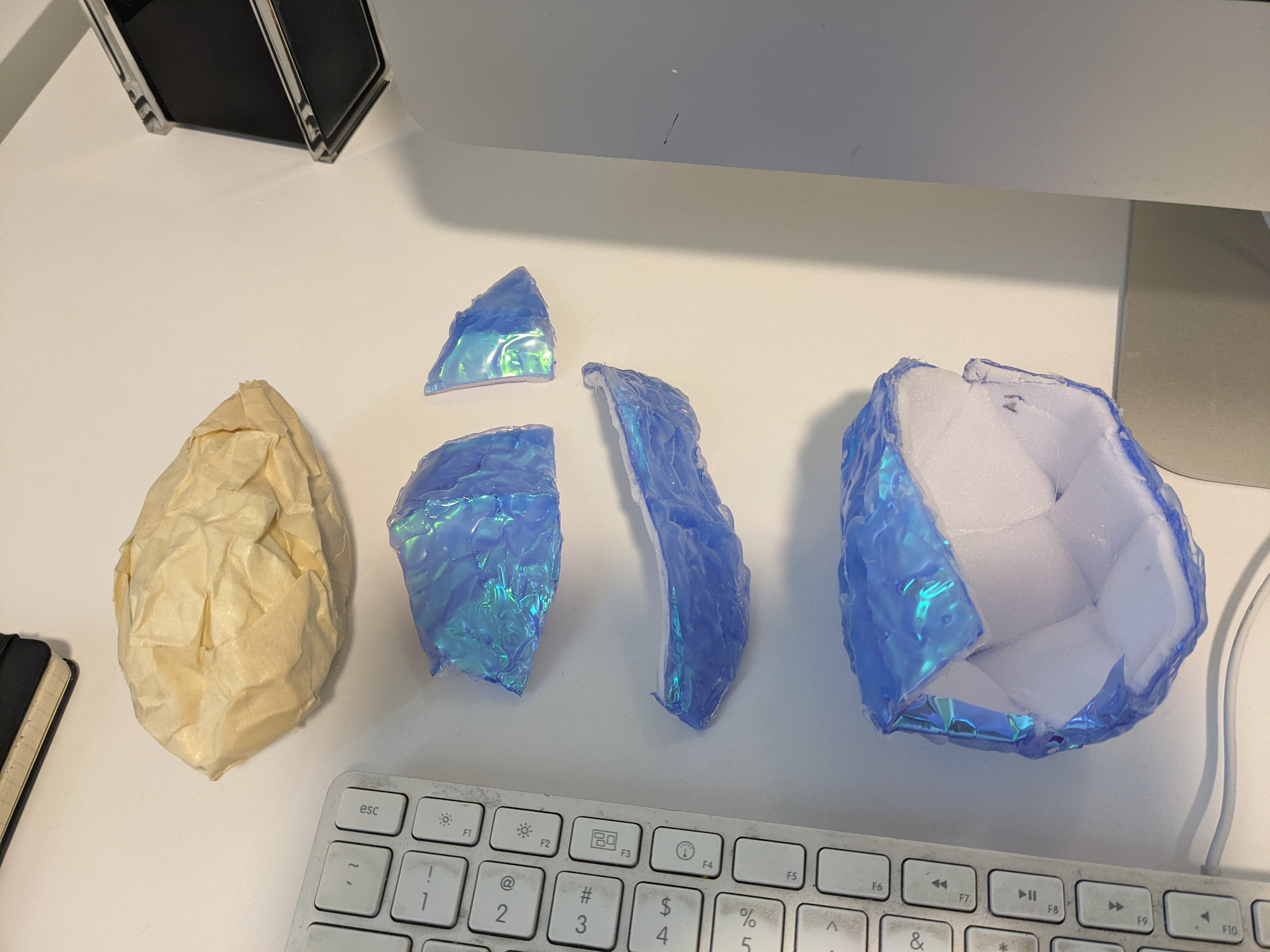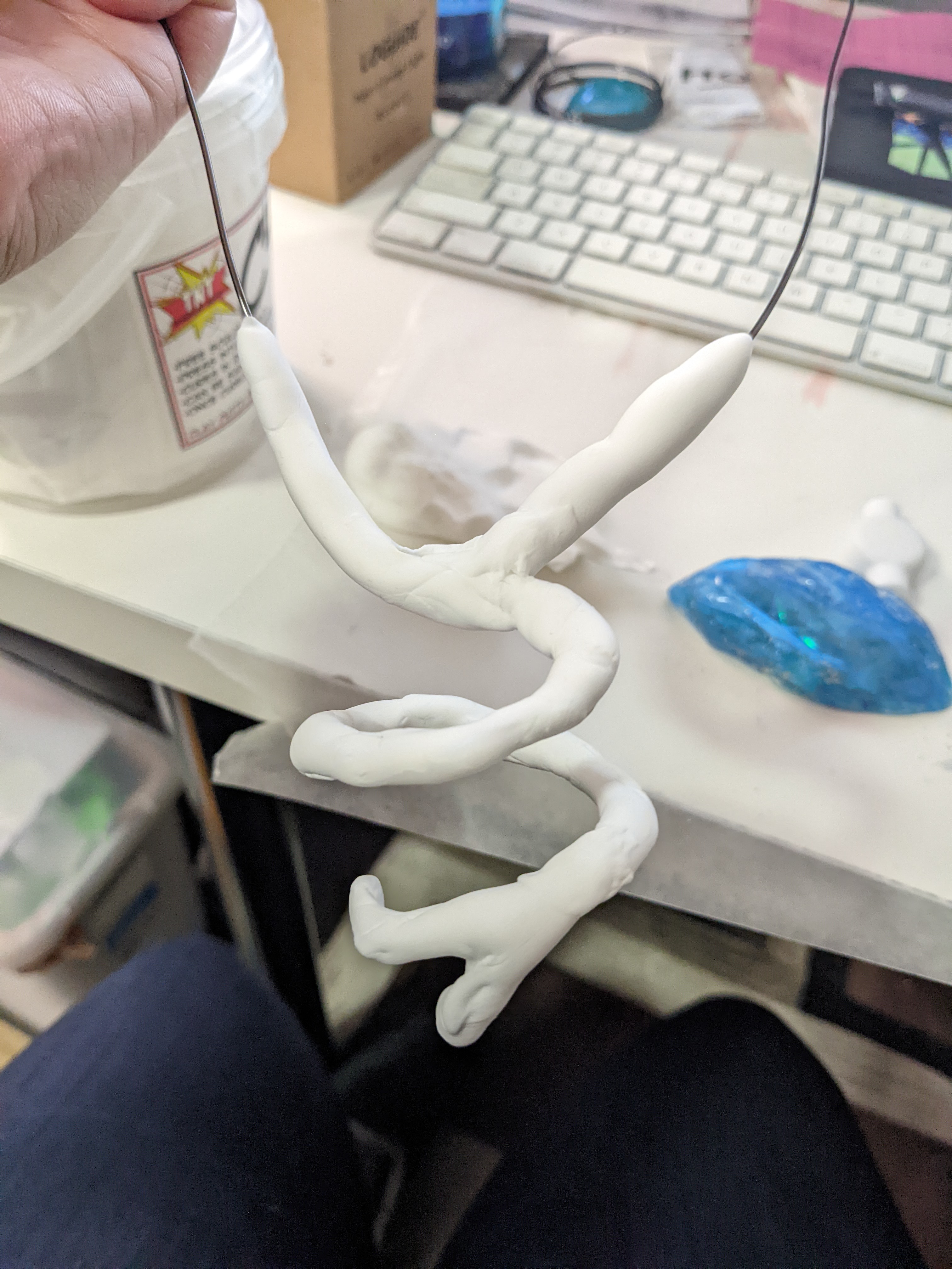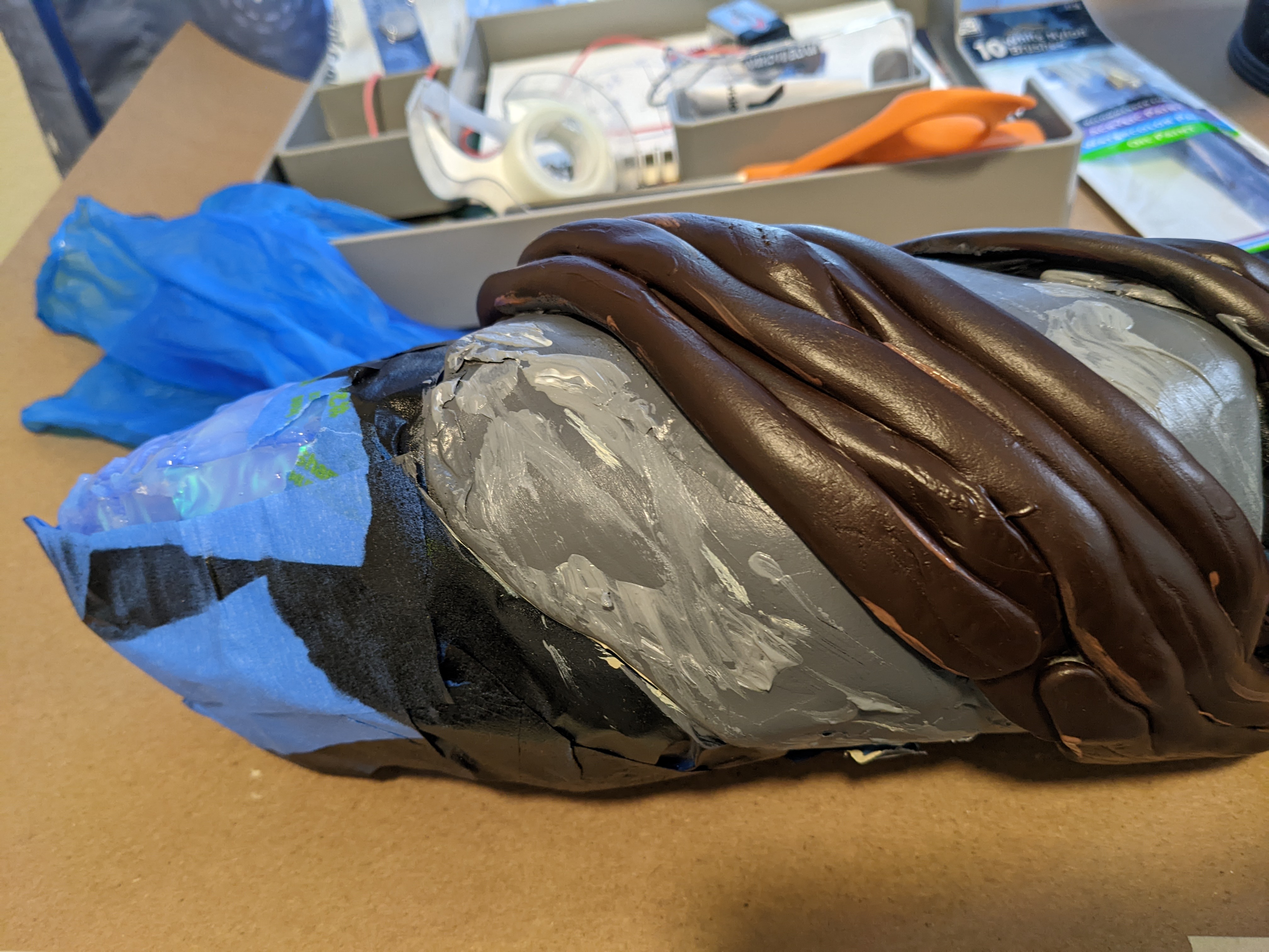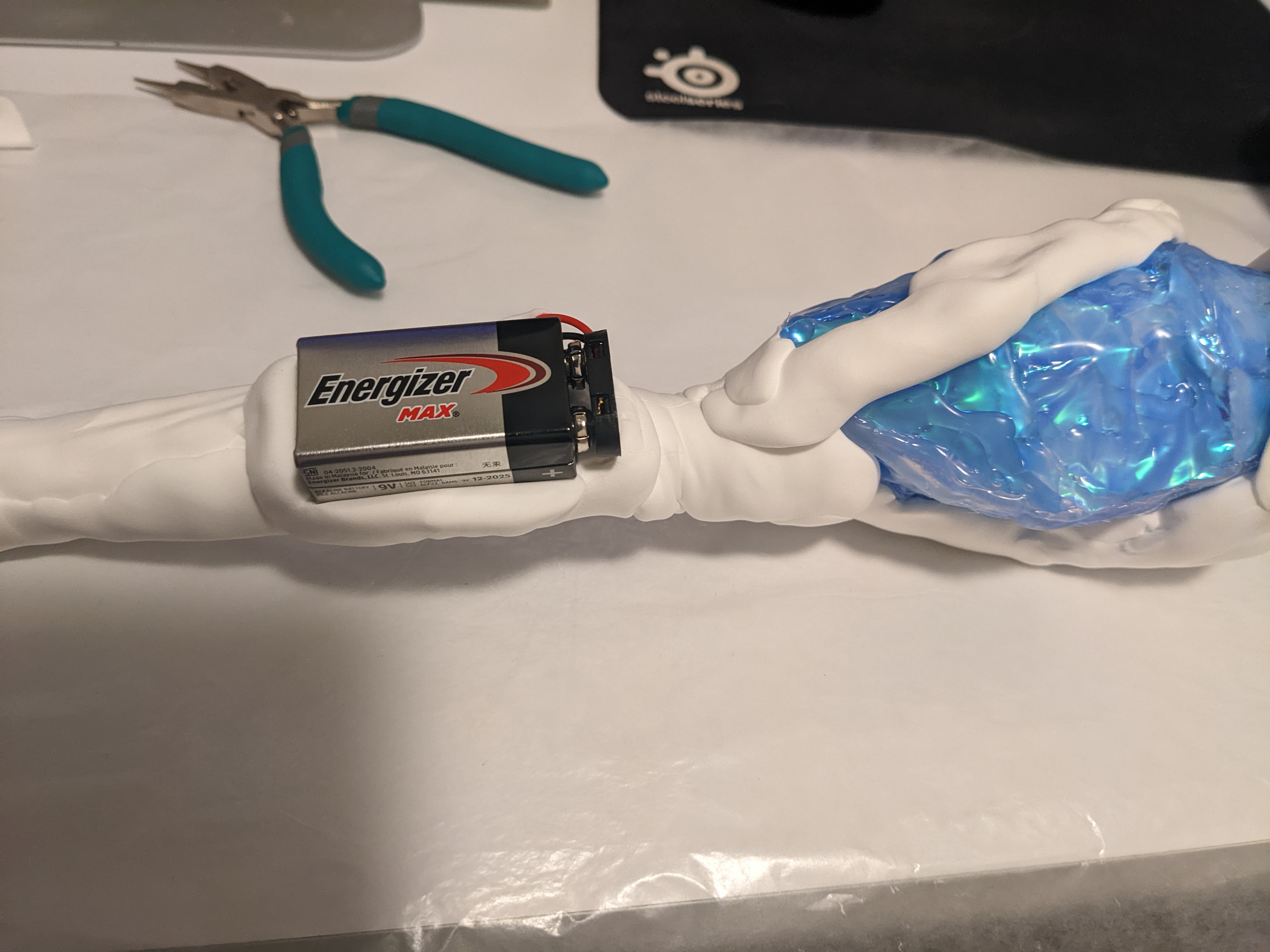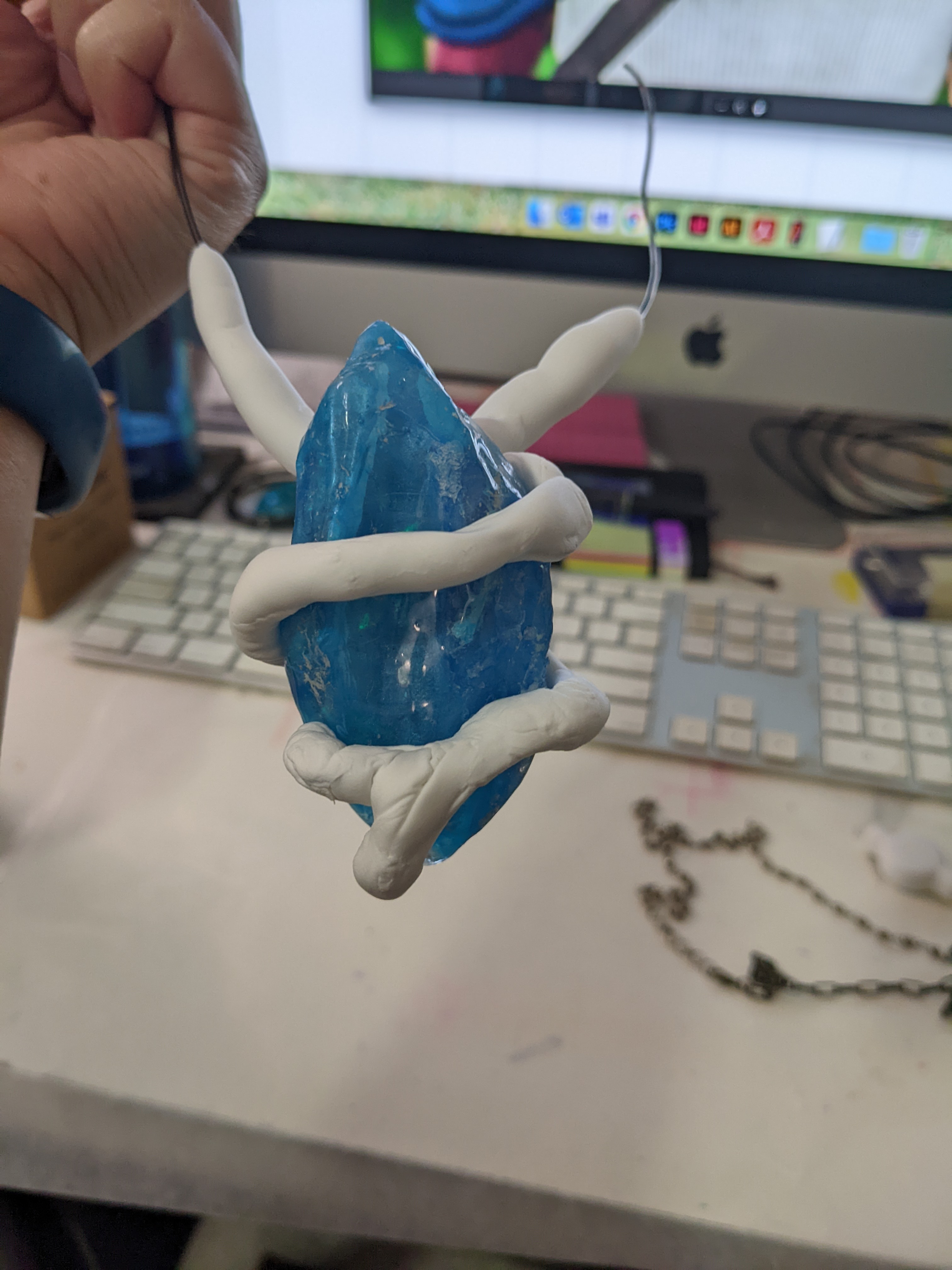 Once the crystals, wire, and LED circuit was in place, it was time to cover the whole thing in foam clay. This part took a while because foam clay itself can take a while to finish drying and curing. At one point, I was using a hair dryer just to speed up the process.