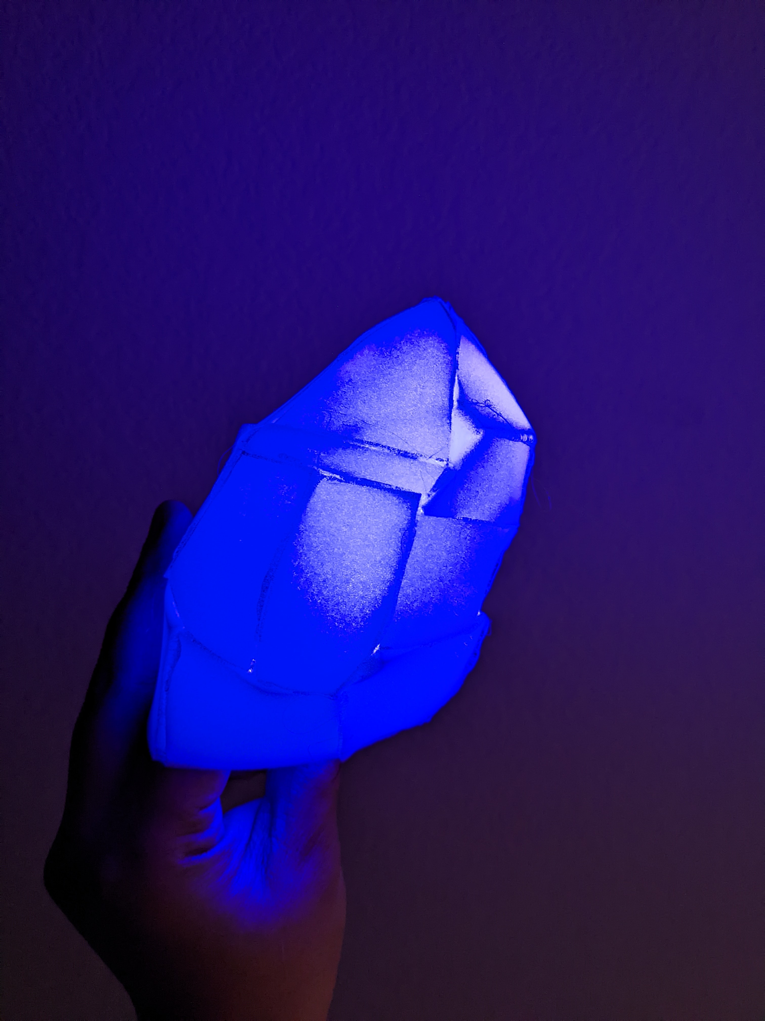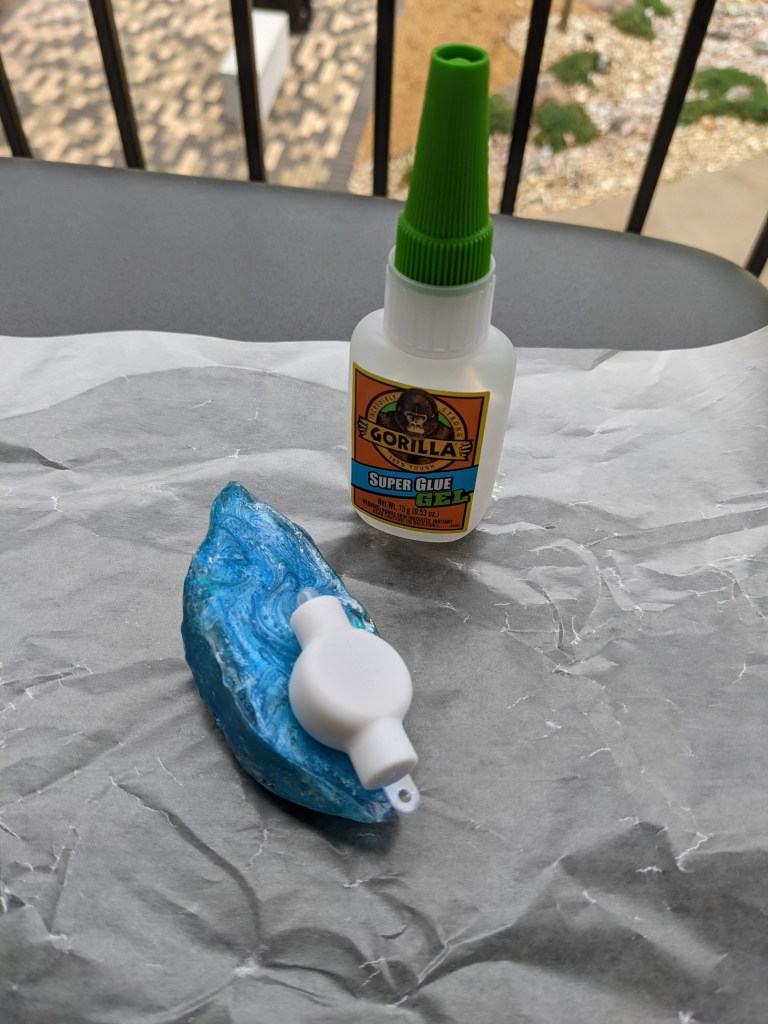 While waiting for the foam clay to finish curing, I used superglue to attach the LED light to the back of the crystal.