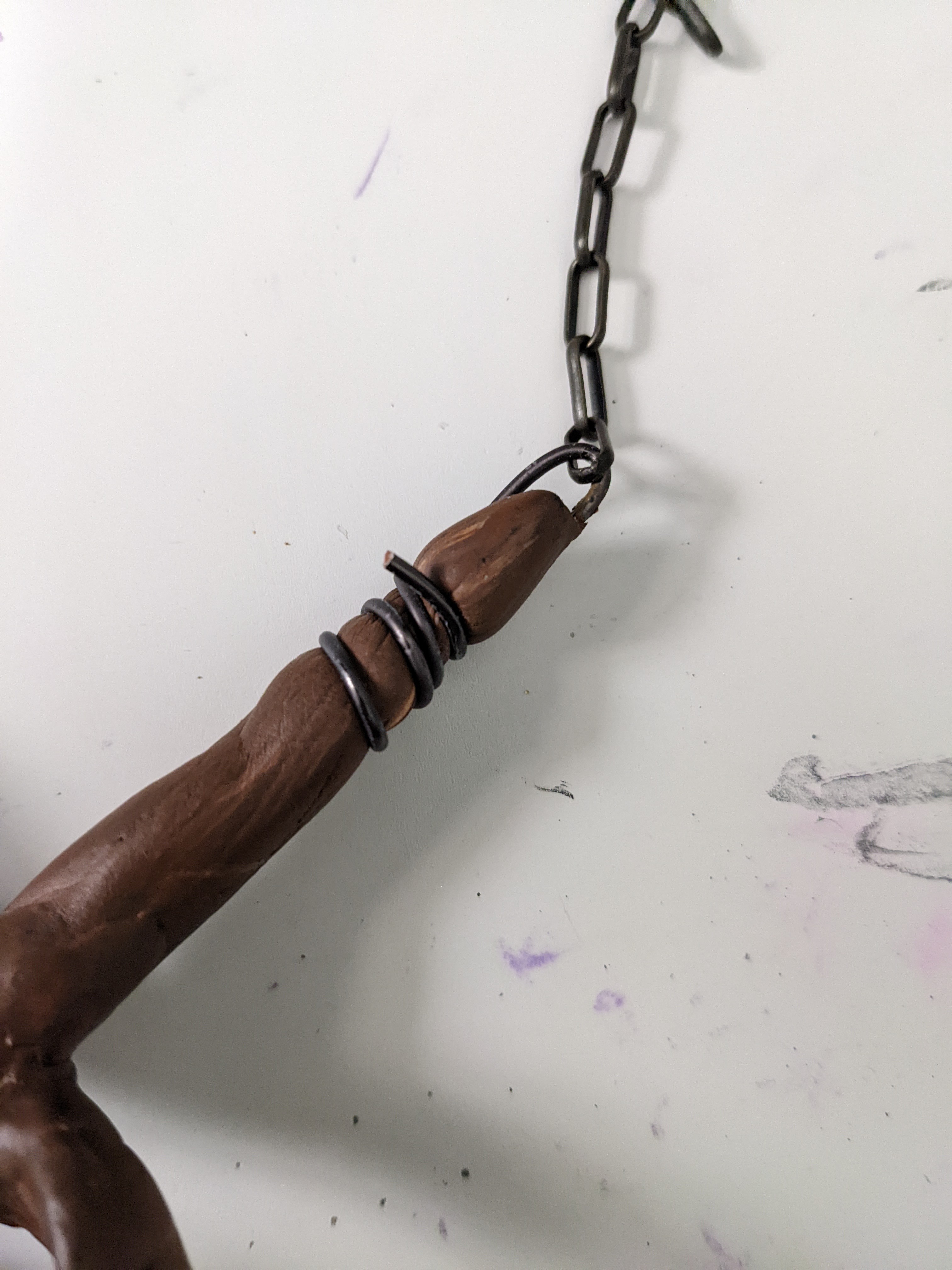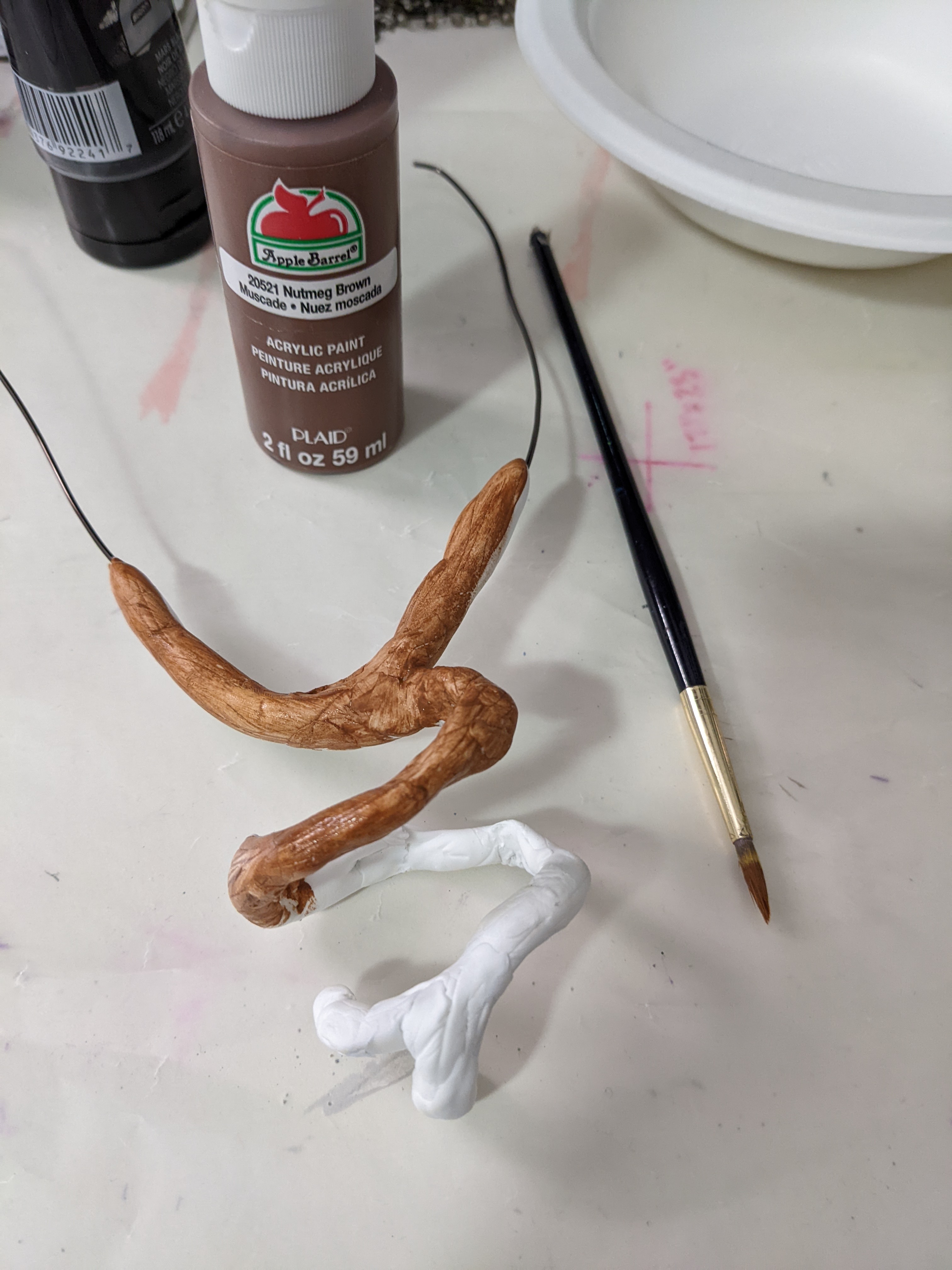 I then covered the wire carefully with foam clay. I did this by rolling the foam clay into little strips and then encasing the wire in them. Sometimes, the wire would peek through, so I’d tear off a very tiny paper-thin piece of foam clay and use that to cover the exposed wire.