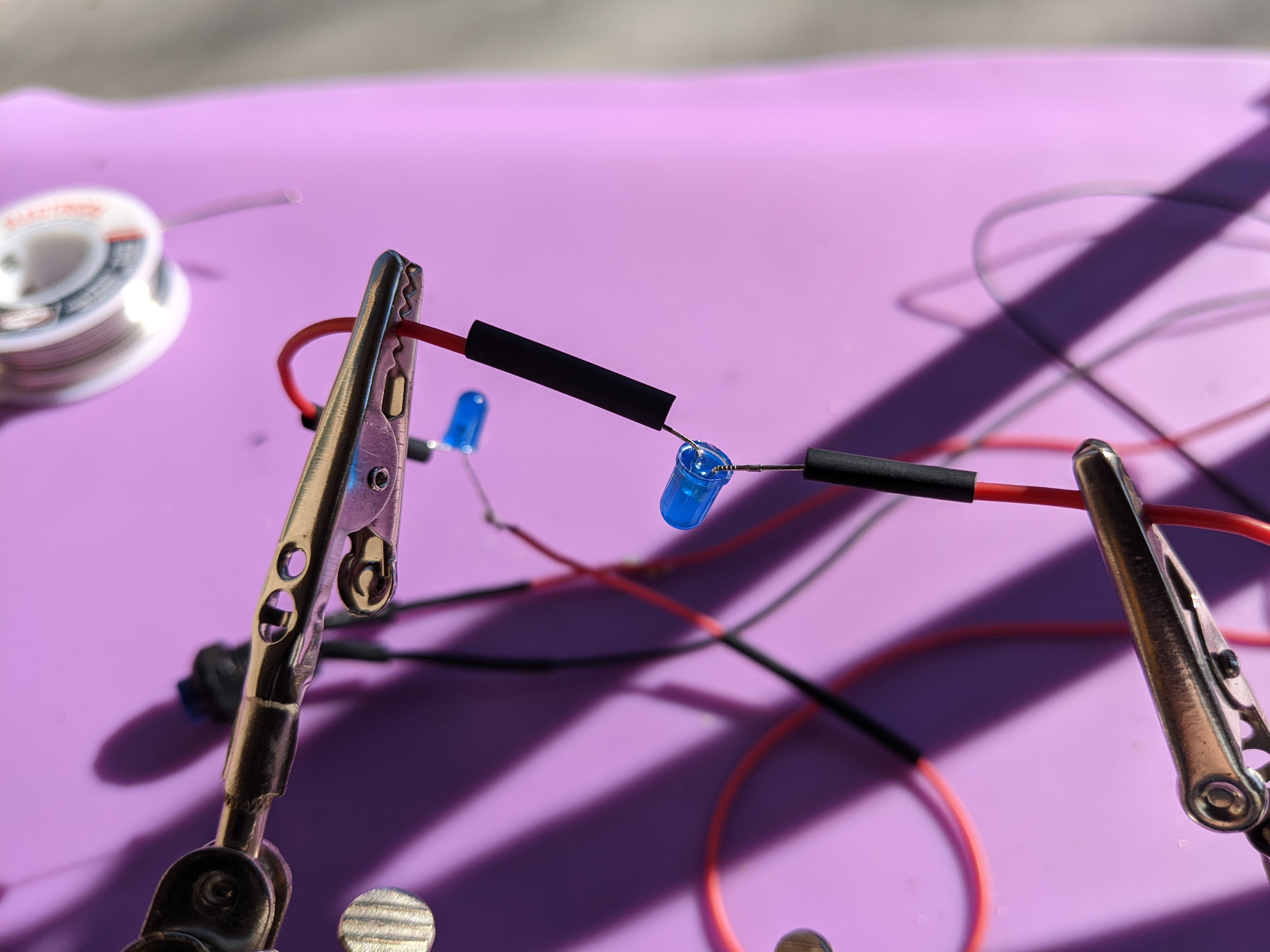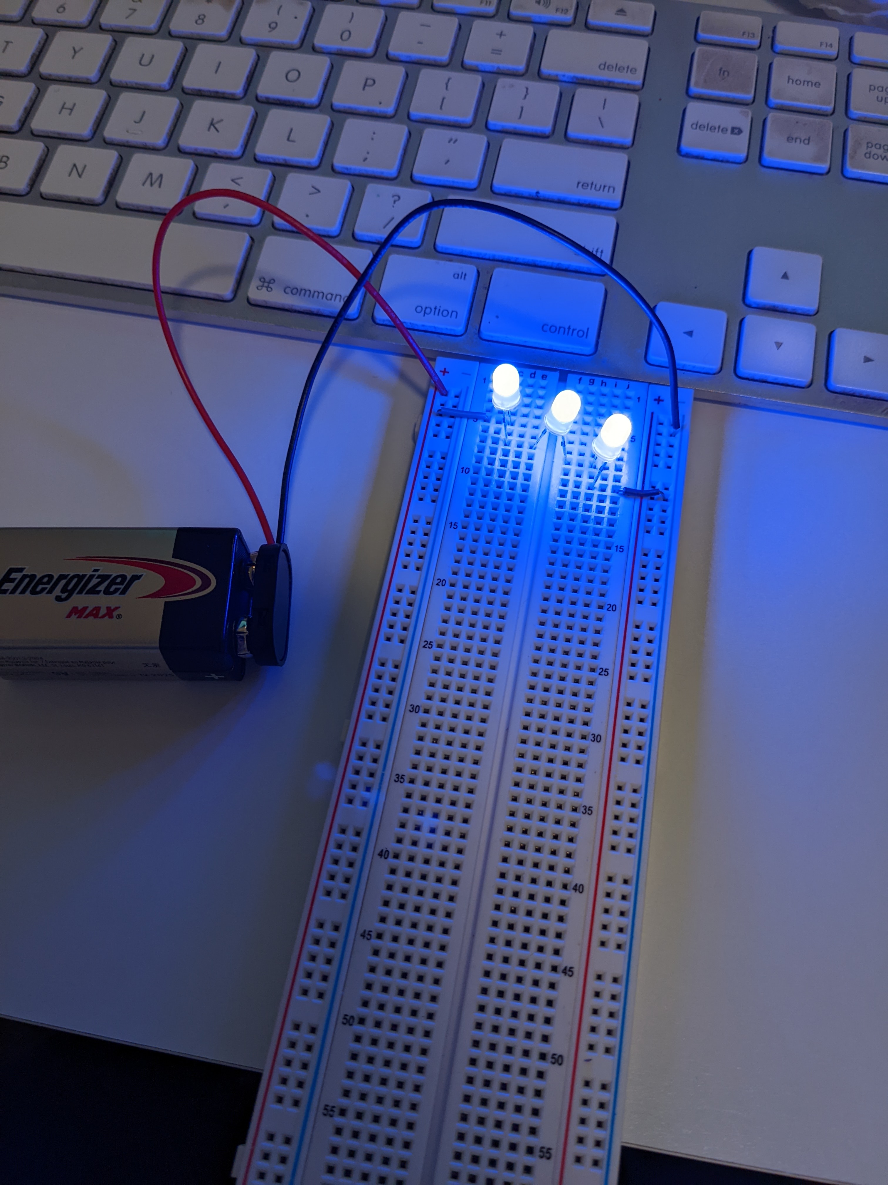 Now would be the time to shout-out Kamui Cosplay’s book “The Book of Cosplay Lights” that helped me tremendously. It was very beginner friendly and I was able to figure out how to use a breadboard to test the lights. (After realizing much too late that my LEDs were different voltages dependent on the color. Which is why I ended up frying a couple in the process. Whoops.)