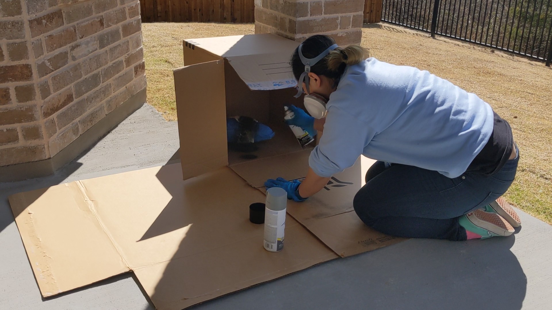 After covering the crystals with painters tape, I primed the whole thing. I slept really poorly the night it stayed outside overnight to dry. I was convinced the wind would move it too much and ruin it. Thankfully, it was fine.