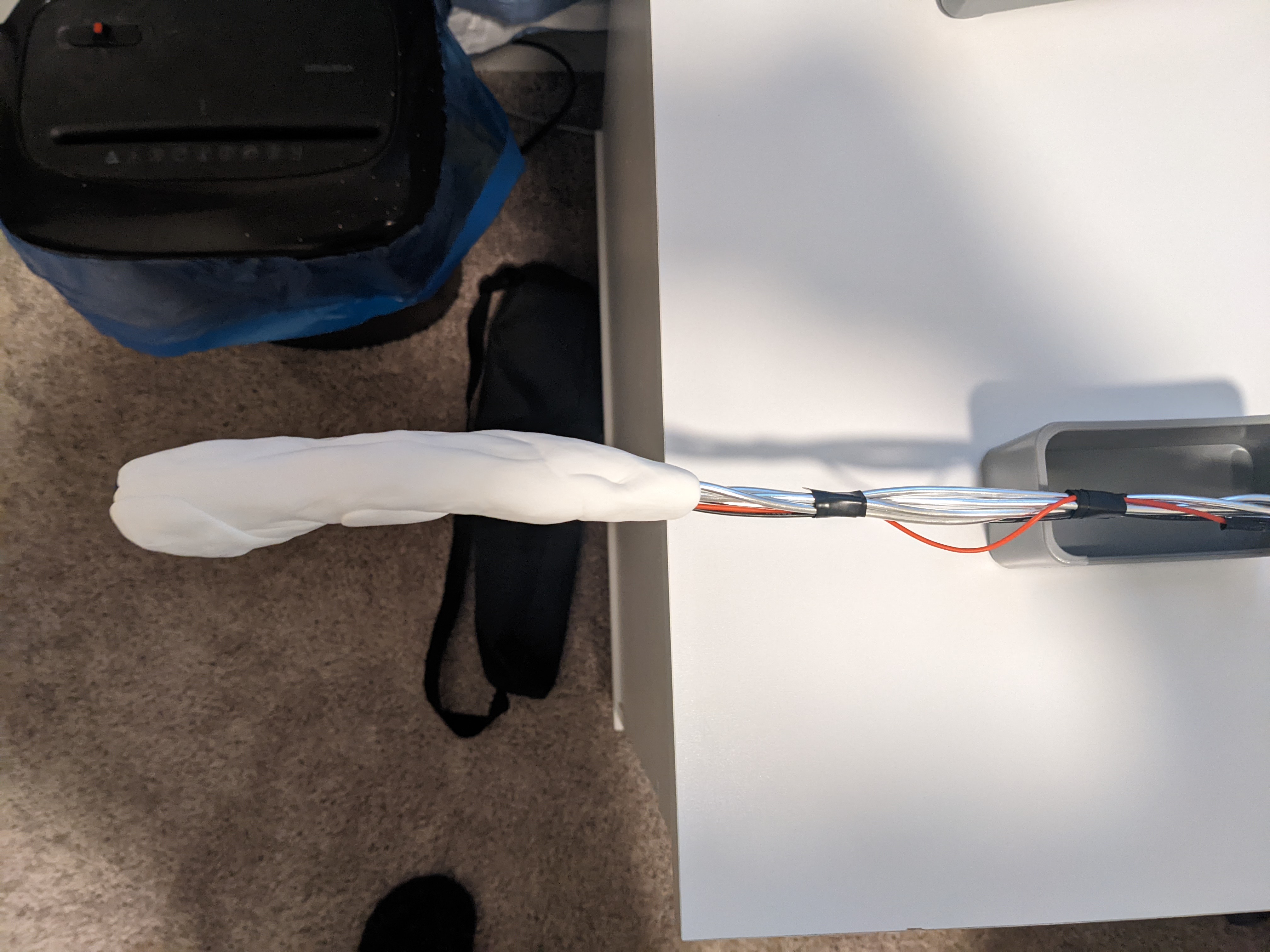 After hot gluing the plastazote together, I used more hot glue to cover the whole thing in vinyl. I left a hole at the bottom for the LED’s to go through.