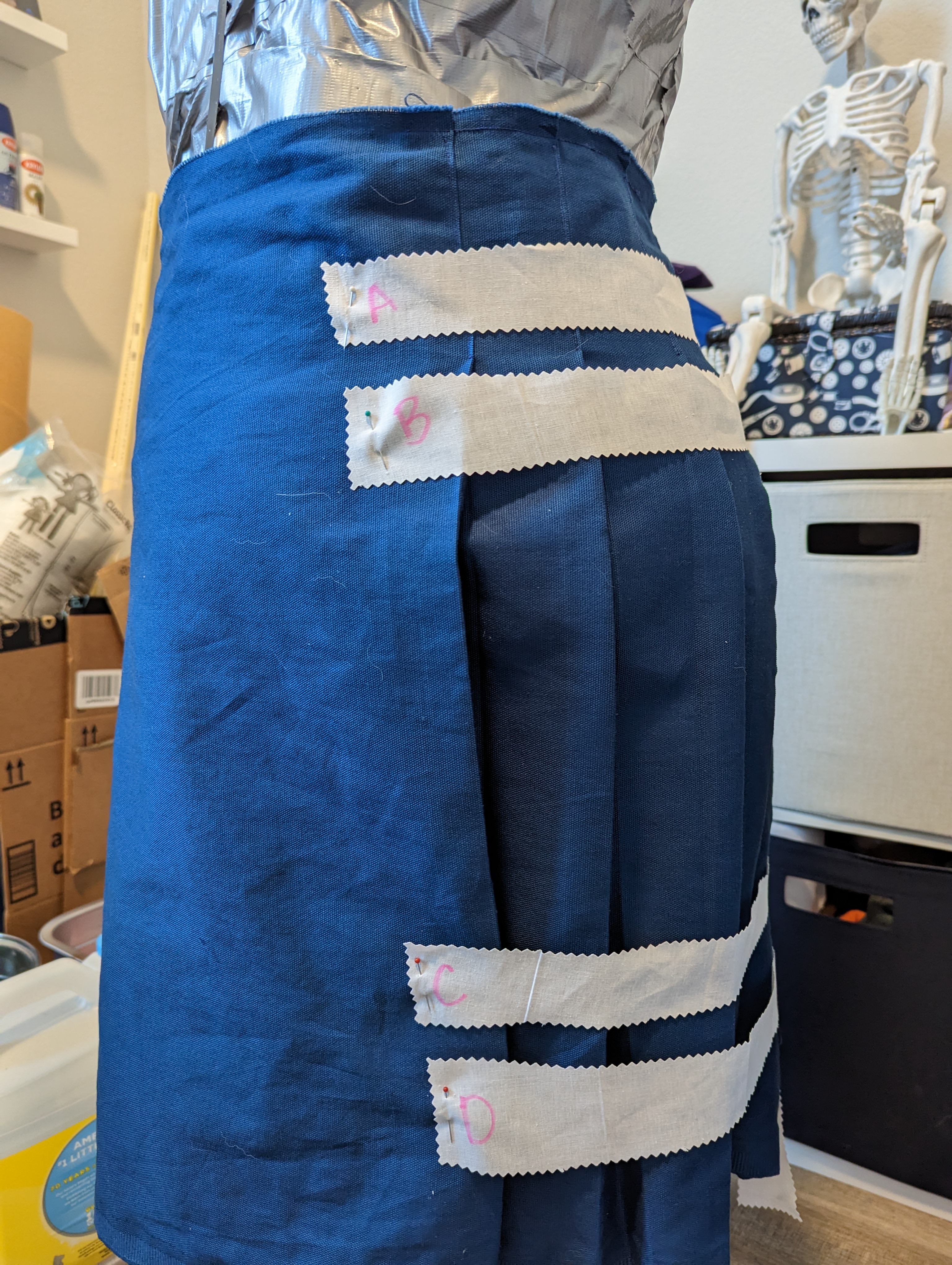 I tackled the skirt first as it’s the most distinct part of Elizabeth’s character design. At first, I tried using a pattern but I wasn’t happy with how it was laying, so I scrapped that and draped and pleated instead.