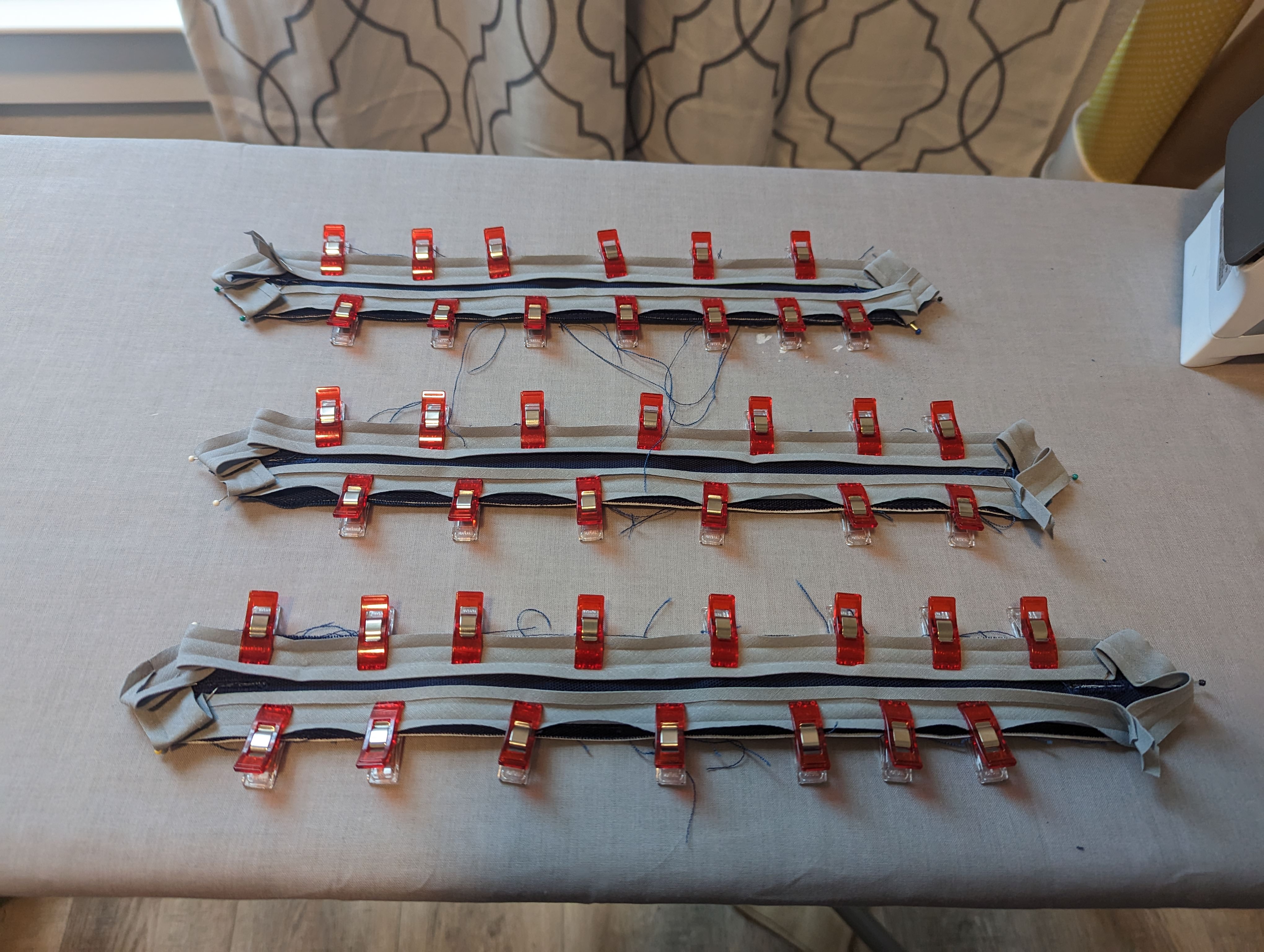 At this point, I took a quick detour to make trim for the bottom hem. I found this great 2″ bias tape maker online and used that to essentially make giant bias tape. Installing it was super easy compared to the bias tape coming up later.