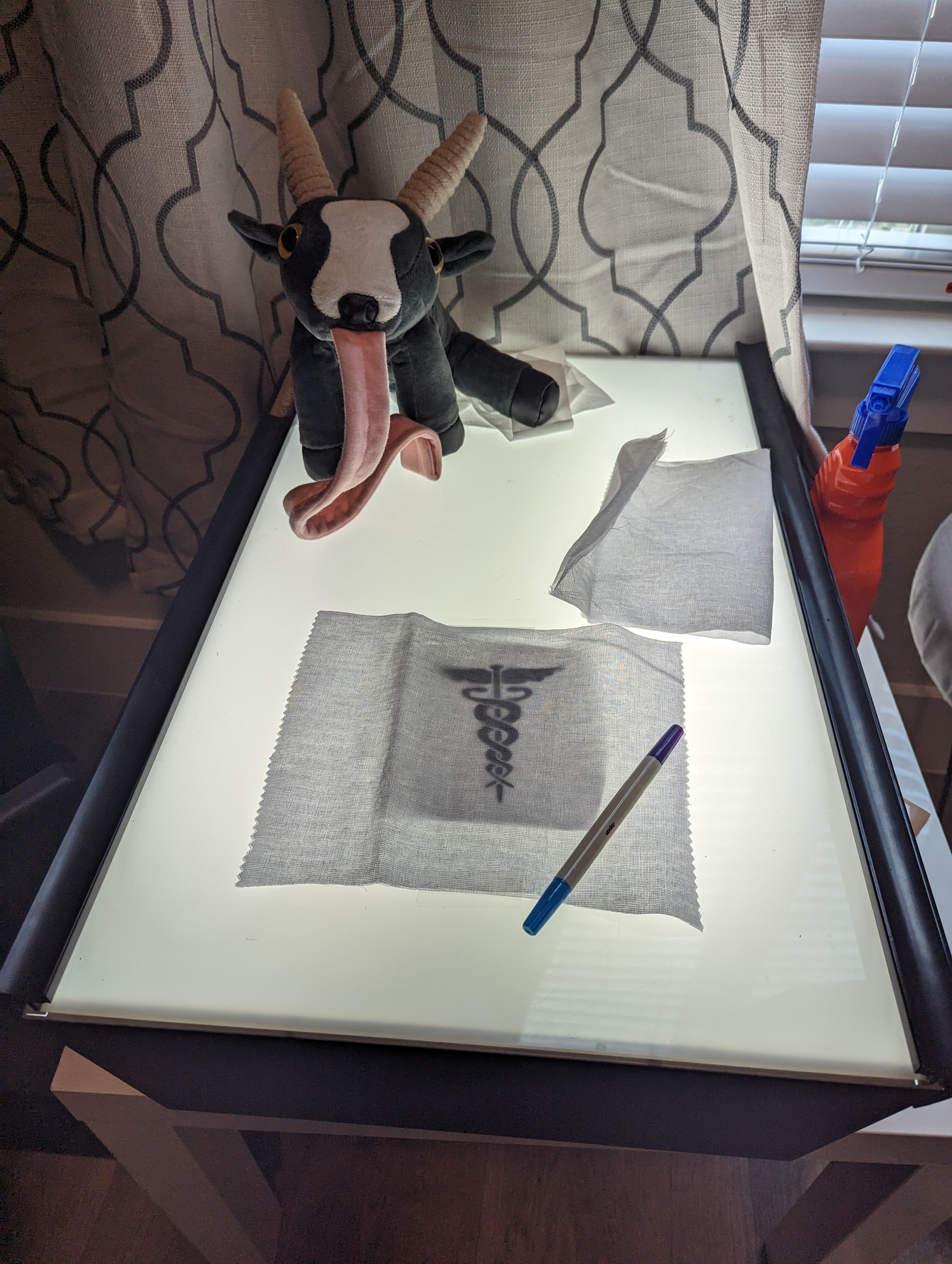 And it’s not an Ashweez cosplay without some embroidery! I recreated the caduceus symbol in Illustrator then had it printed out. After embroidering it twice, I stitched it onto the bag carefully using an upholstery needle.