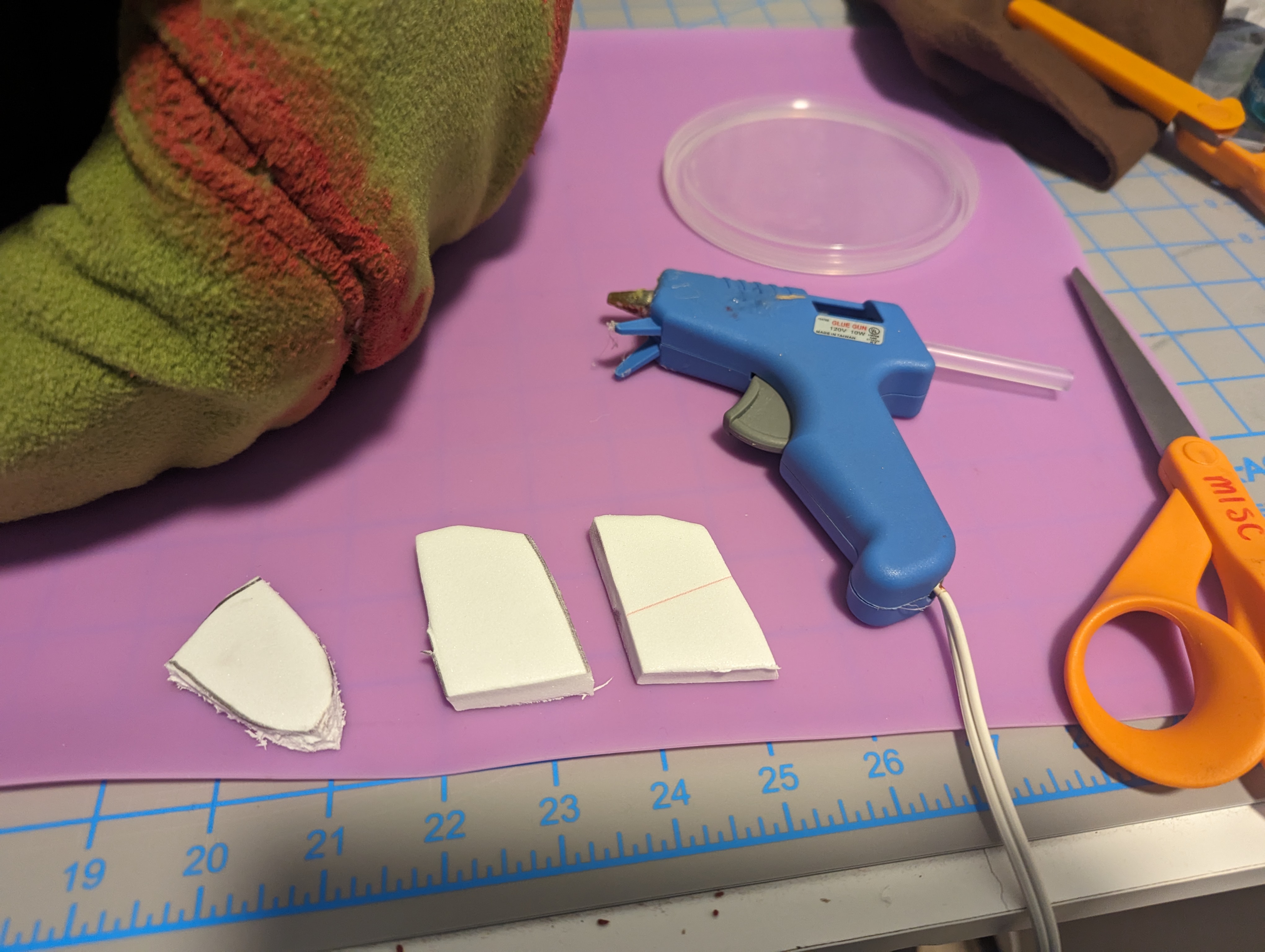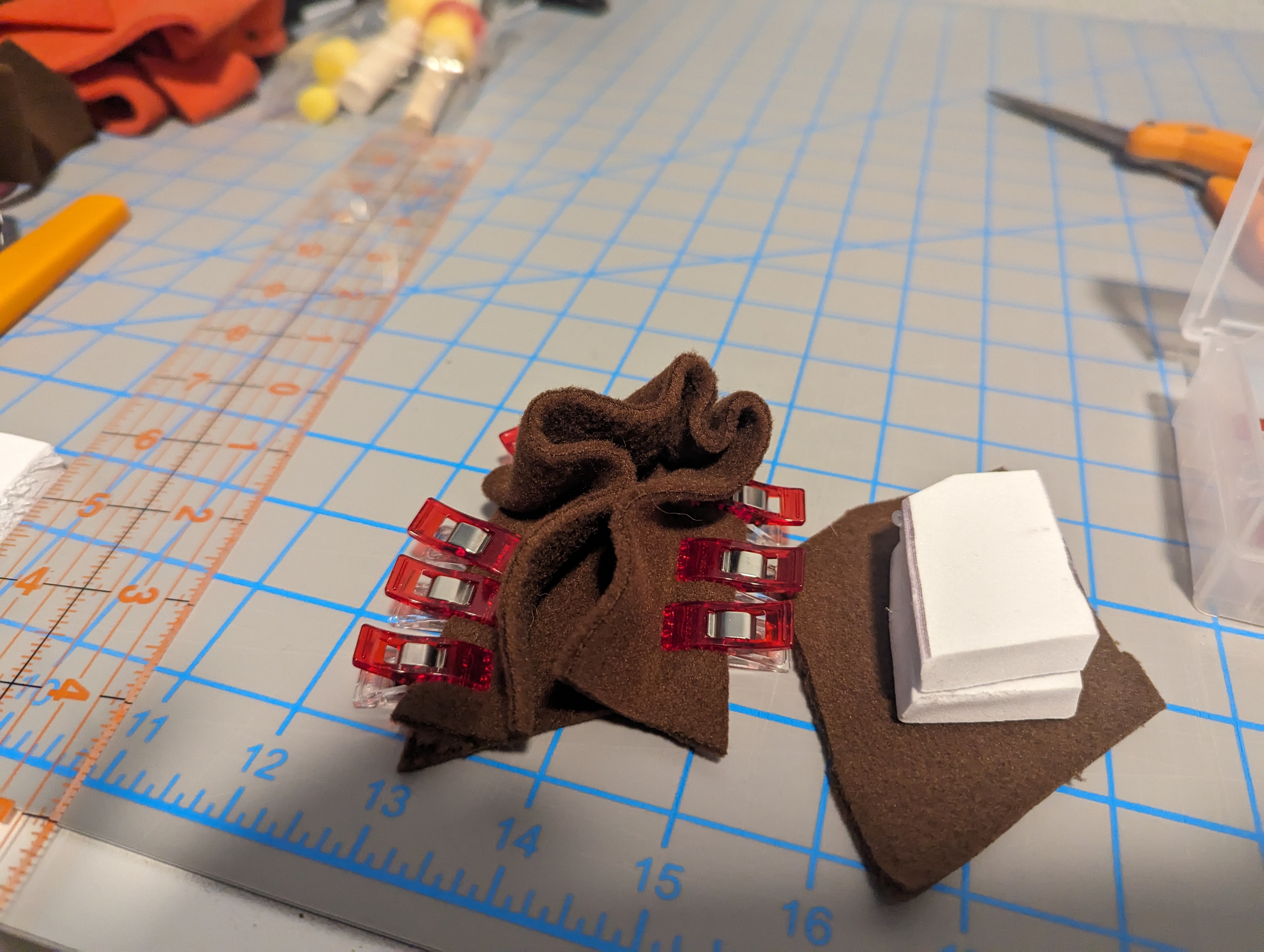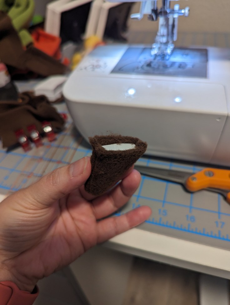 Next up, I used EVA foam to make both the goatee and stem. The ghoatee was one small piece of EVA foam covered in fleece while the steam was two EVA foam pieces glued to each other and then covered.