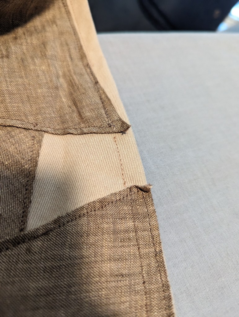 If you remember from my Mae cosplay, this cape is made up of eight panels, with clear curves following the shoulder seams. With this in mind, I separate the lining from the fashion layer. Then, by cutting out the seams (I didn’t feel like painstakingly seam-ripping), I kept two panels in tact for the front piece and two panels in tact for the back piece. That left me four more panels to work with for the sleeves. I ended up using one panel per sleeve.After making a sleeve pattern, I cut out the last remaining fabric I would need and started assembling. I used french seams throughout so I wouldn’t have to zigzag stitch or serge to finish the raw edges.