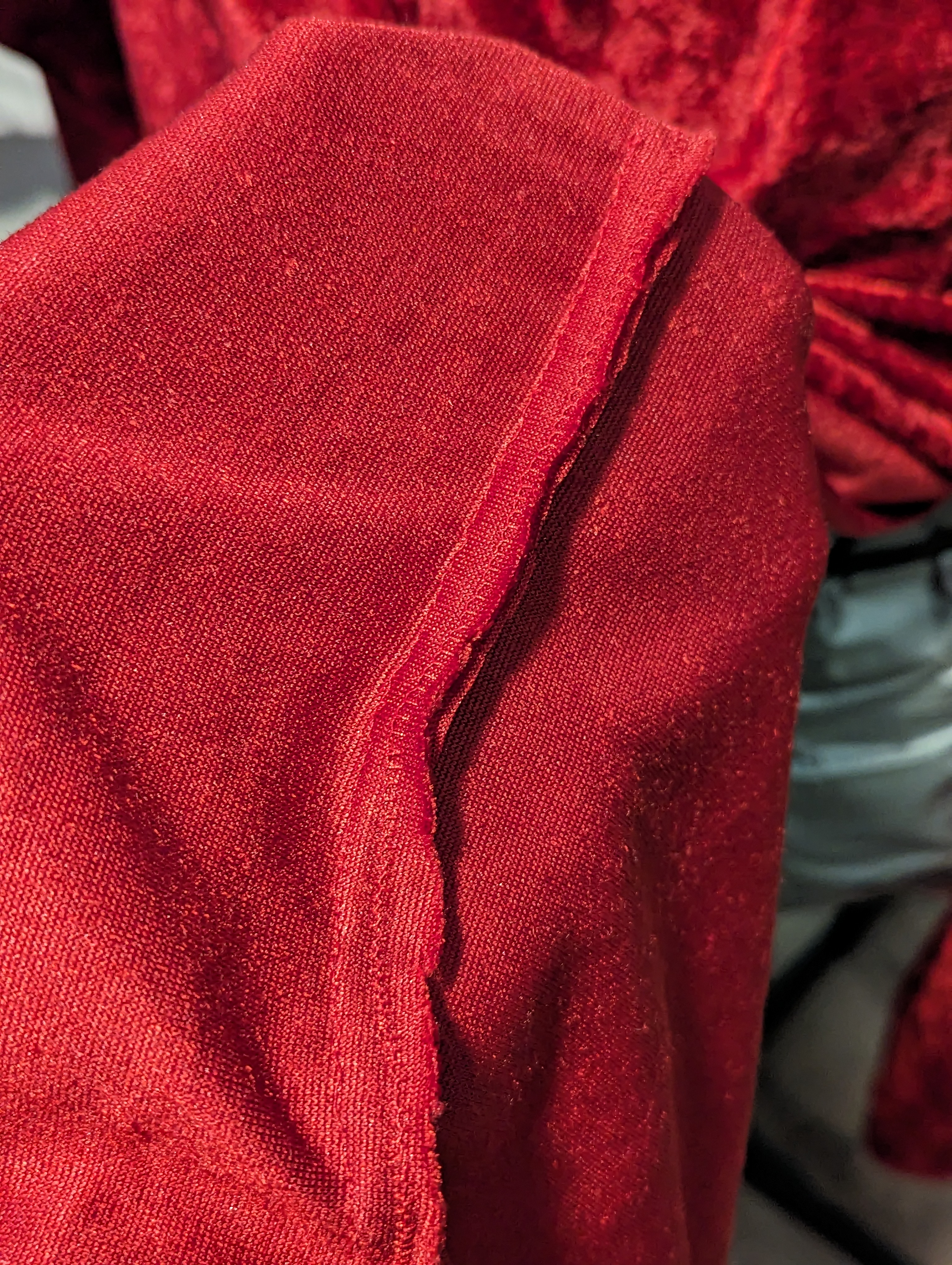 Melon Lord was perfect in that I already had so many of the materials handy. I had the base for a melon-shaped mascot head, red velvet fabric, and orange fabric. After throwing the fabric over my dress form and confirming that yes, the colors—while not perfect—did work well, I decided what had to be done.