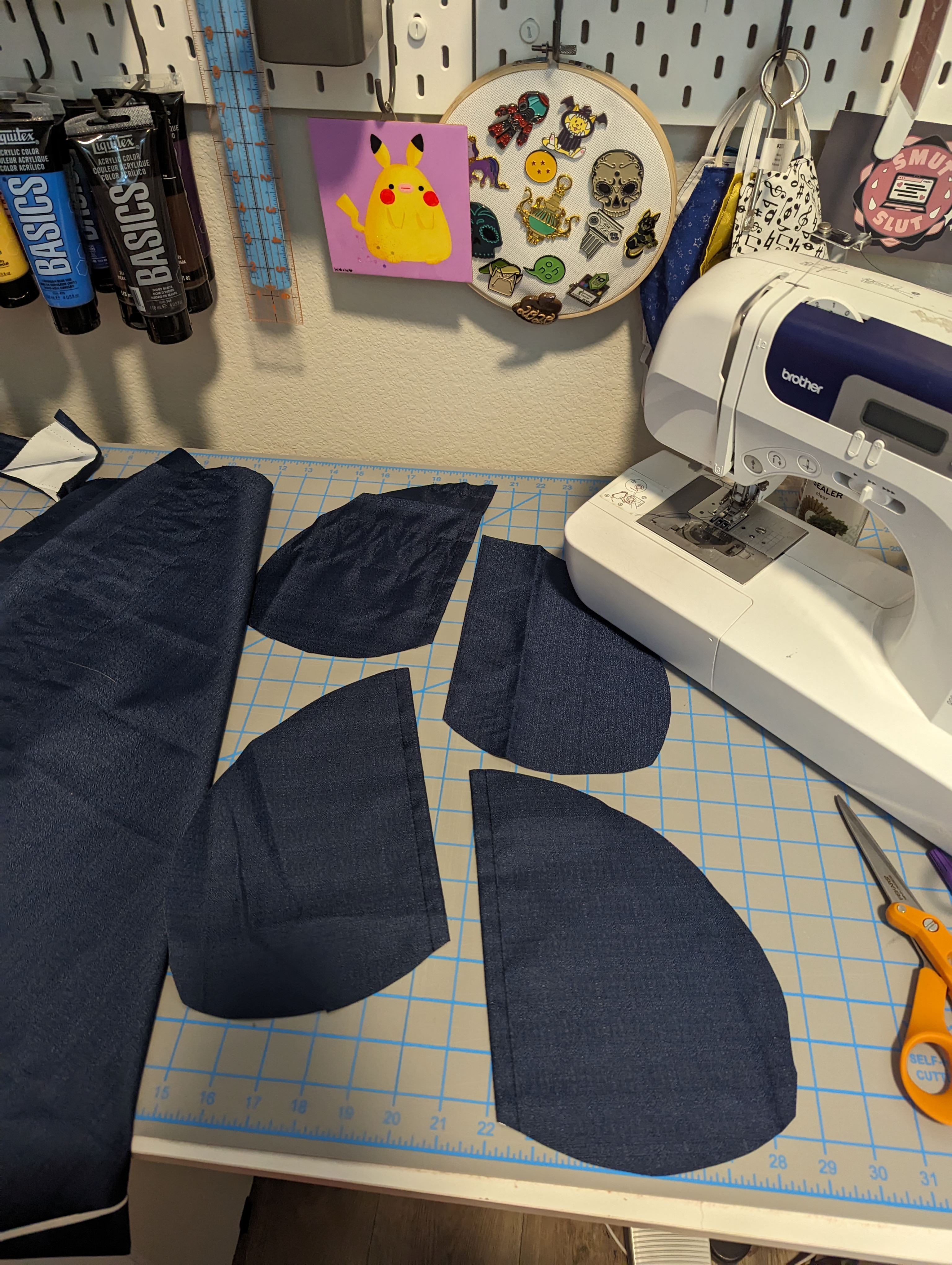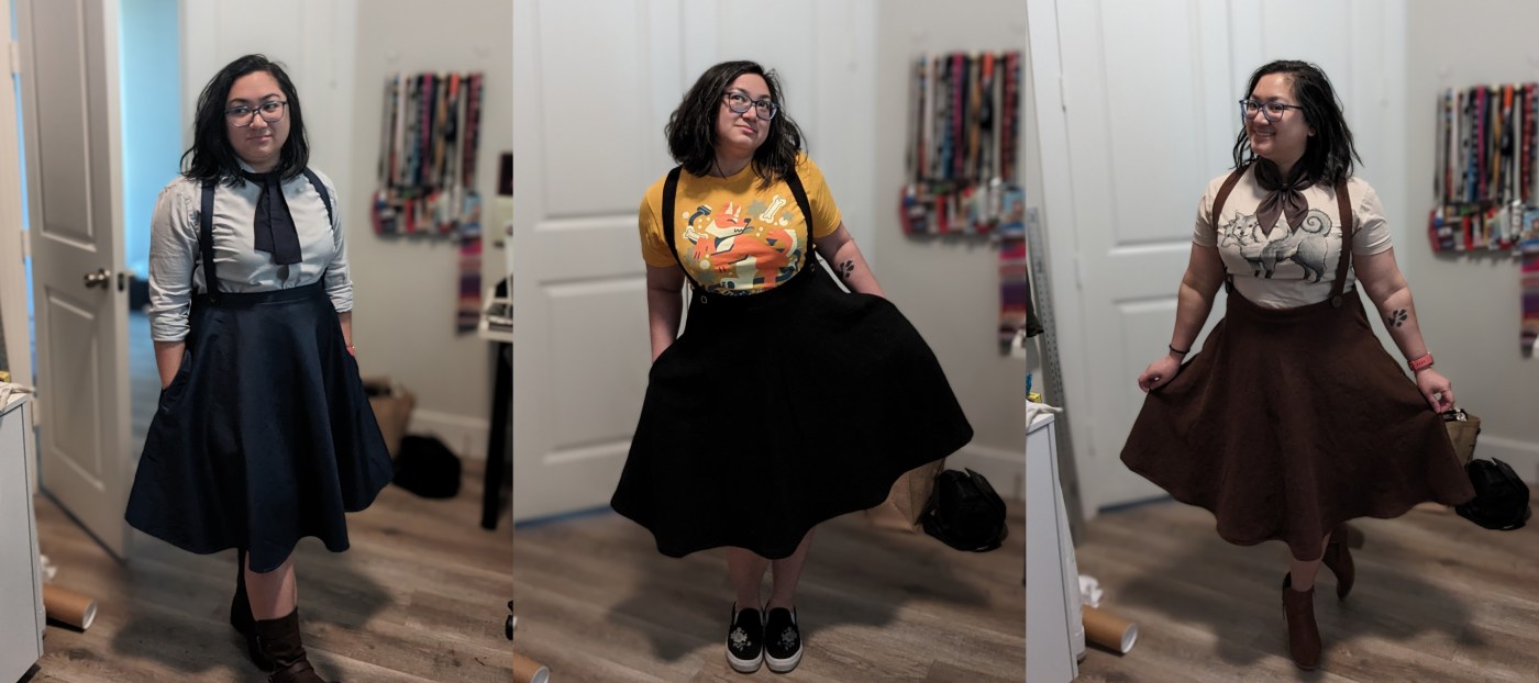 It was so easy to do. The navy curtain skirt was so fast, much faster than any cosplay project. Much simpler than any character design. What if I just… bought more fabric and made more in different colors so I could coordinate outfits? Once the idea struck me, it was impossible to ignore.