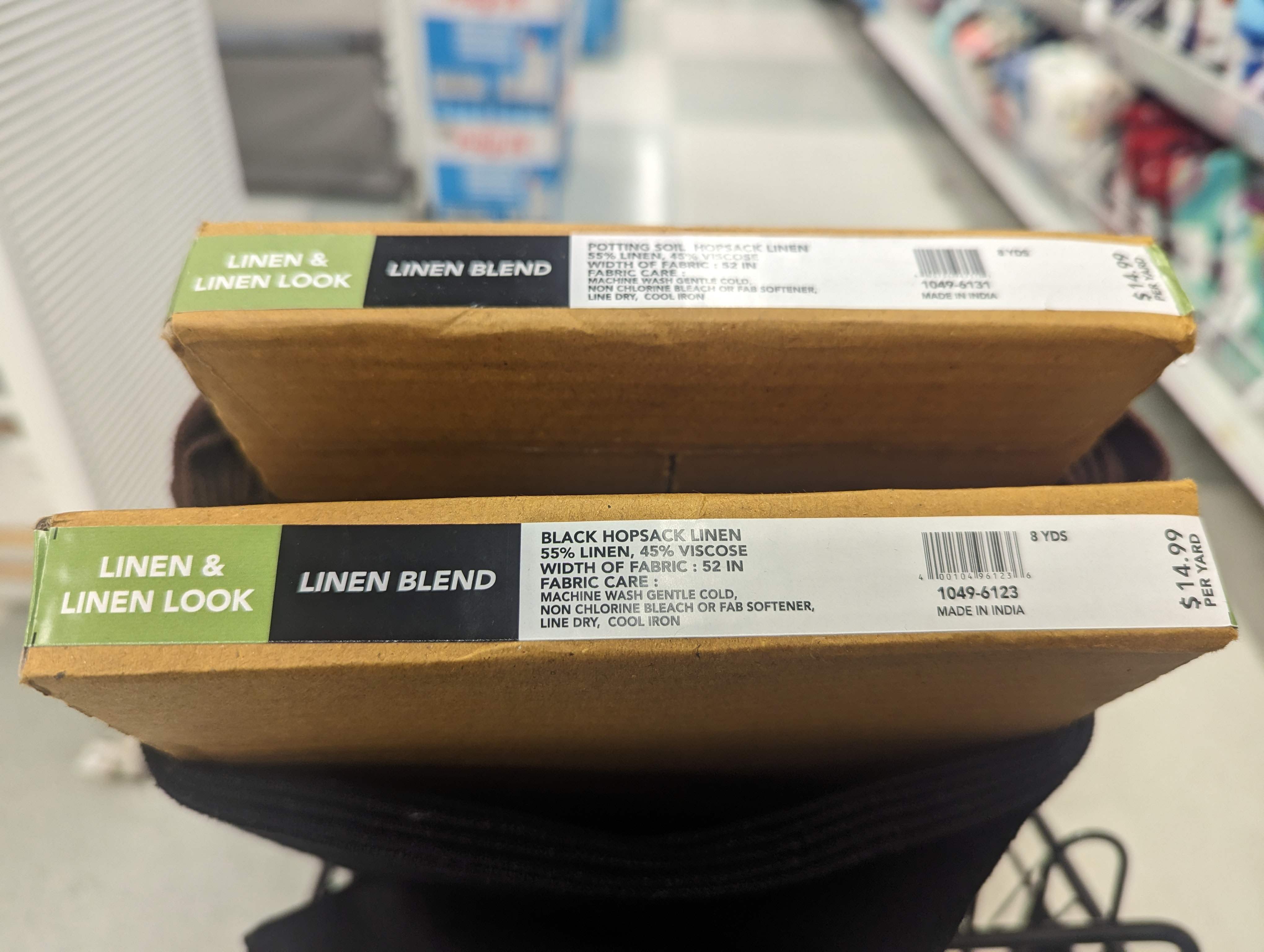I’m terrible about fabric. I’m not good with names and I am the type that just goes down the aisles of Joann’s touching everything until I find something I like. This is the method I used to find fabric for a brown and black pinafore.