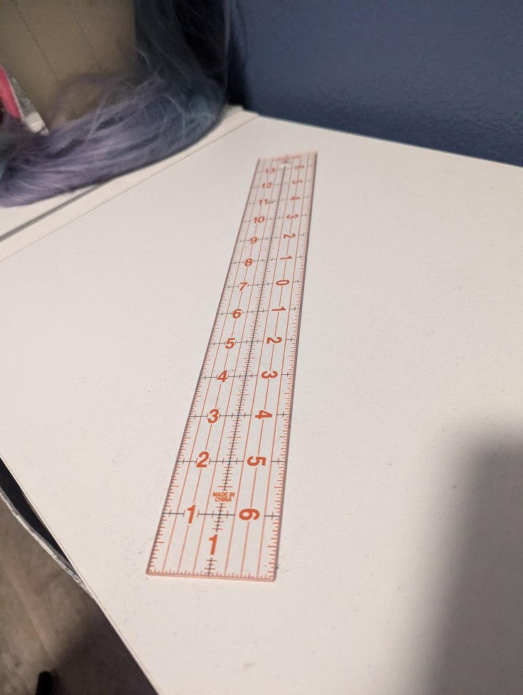 I don’t remember when I bought this ruler. It might’ve been as long ago as college (which was over a dozen years ago). I think I had bought it thinking I would use it for drawing, but it really comes in handy for sewing. I love using the parallel lines for adding seam allowances to patterns.