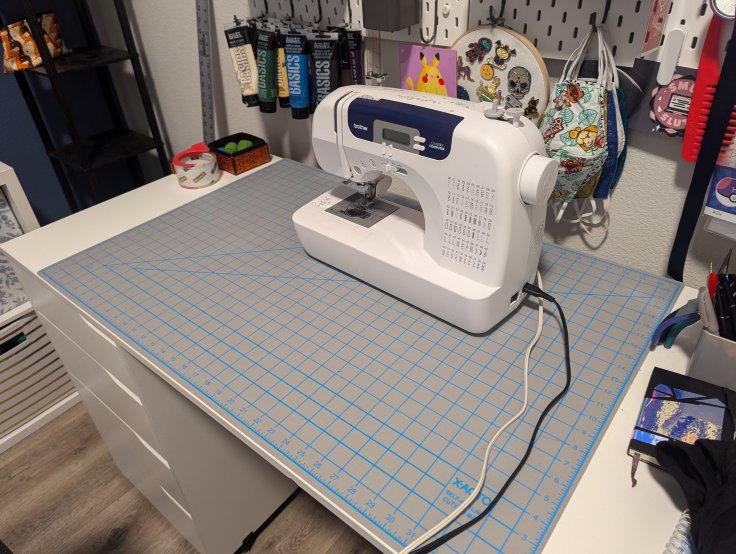 I bought mine using the gift card I had received for winning a judge’s award in a cosplay tutorial contest and it is so nice to be able to cut on such a large area. It’s practically my entire table! Not having to shift the fabric around to cut big pieces is so nice; I can just cut to my heart’s content without really having to think about it except for truly giant fabric pieces. It’s also handy as a quick ruler if I just want to measure something really quickly. By far my most used contest prize.